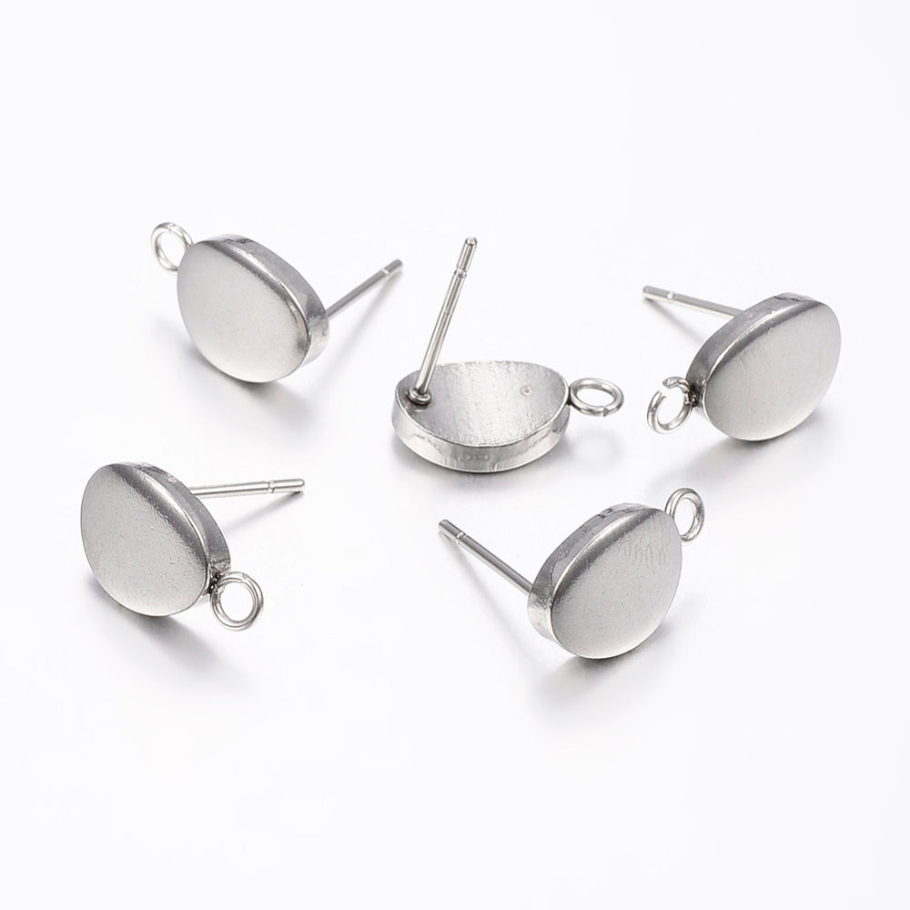201 Stainless Steel Stud Earring Findings, with 304 Stainless Steel Pins and Horizontal Loops, Oval, Light Gold