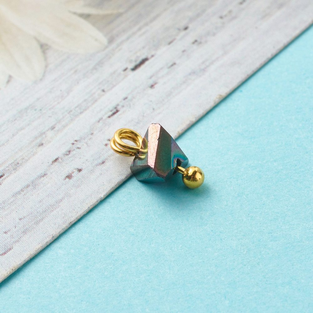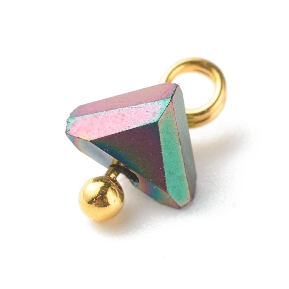 Electroplate Glass Charms, with Brass Ball Head Pins, Triangle, Gold