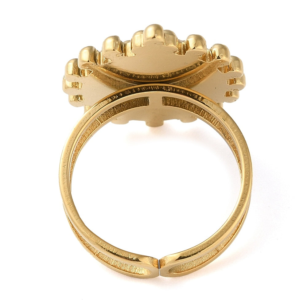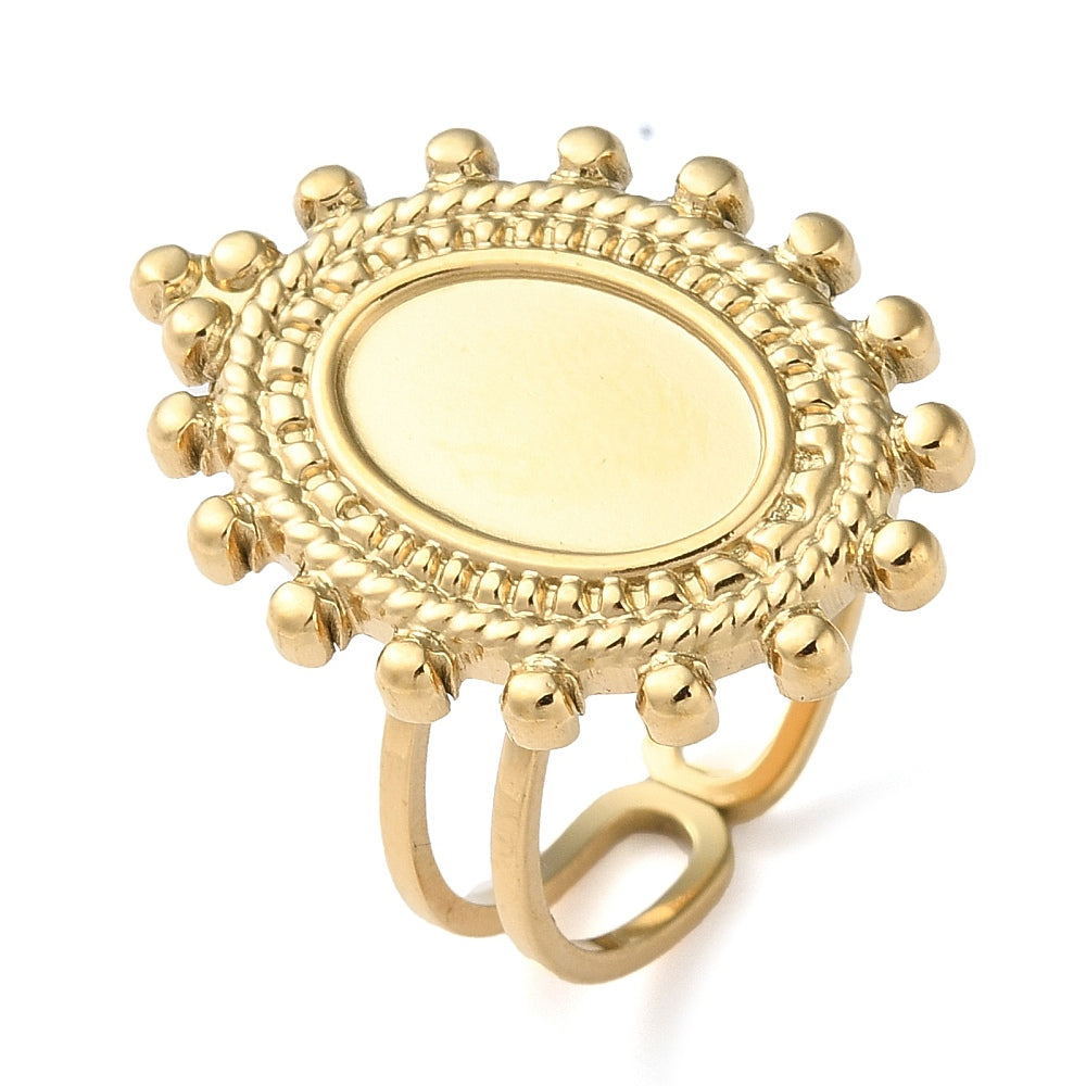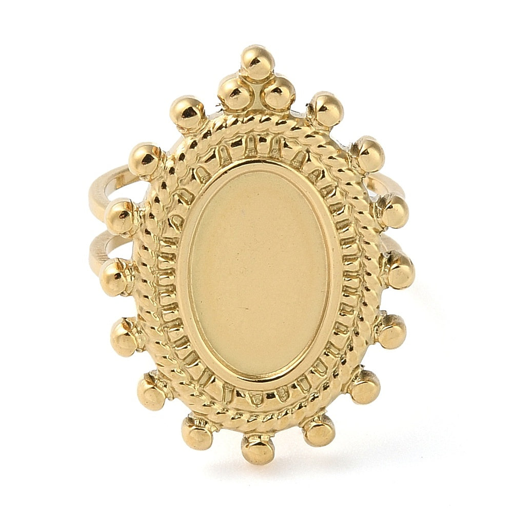 304 Stainless Steel Open Cuff Ring Components, Bezel Cup Ring Settings, Oval, genuine 18K Gold Plated adjustable