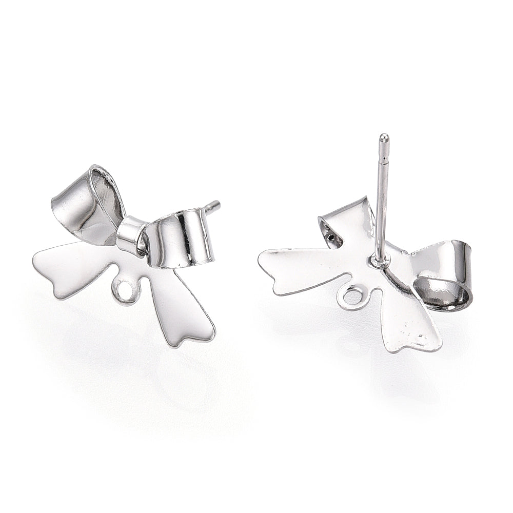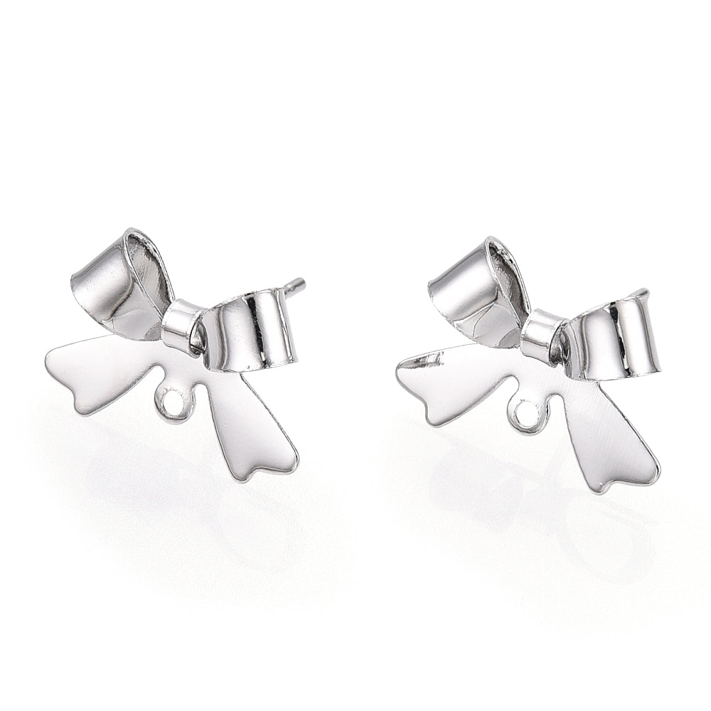 Bow Stud Earring Findings, Nickel Free, Platinum colour