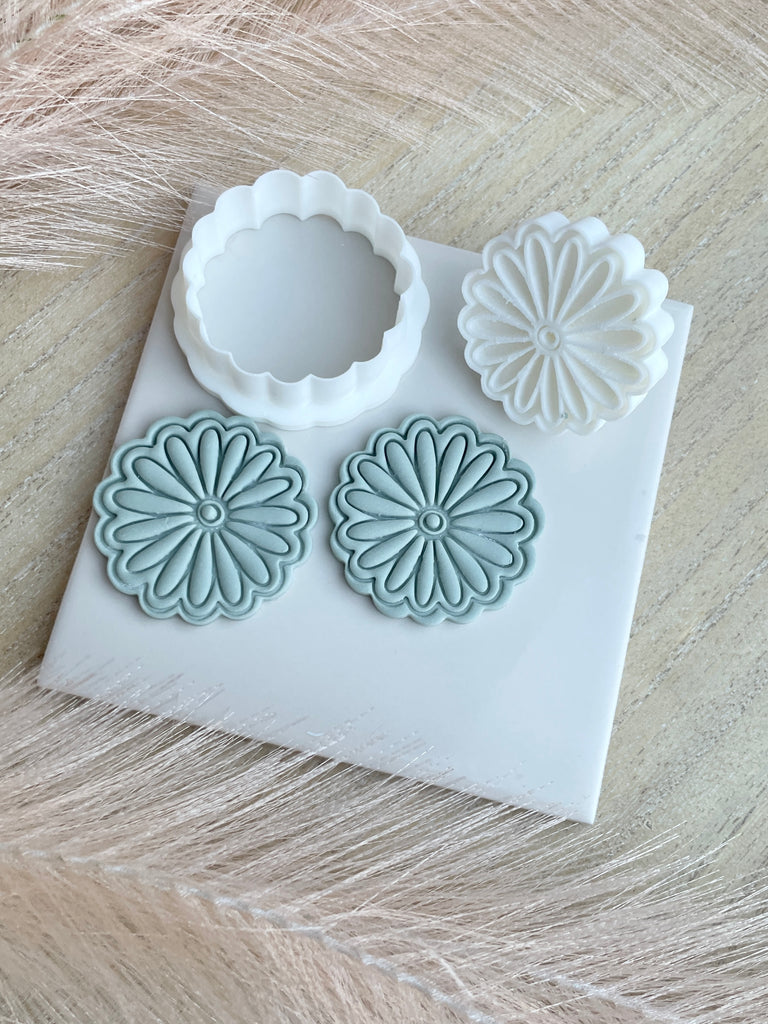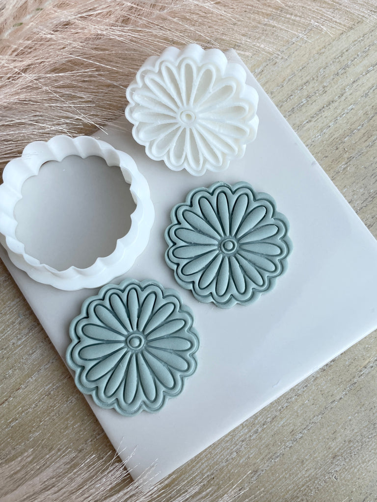 4cm. Stamps are an easier alternative than cutters with very detailed imprints plus you can use the stamp on its own with any cutter you choose. To use stamps successfully I recommend lightly dusting the stamp with cornflour, then firmly press into the clay making sure you apply pressure evenly allowing the imprint to be even. Then using the cutter place it around the stamp.