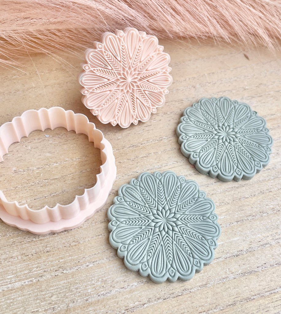 4.5cm - this cutter is very detailed with fine imprint. Please use with care. Stamps are an easier alternative than cutters with very detailed imprints plus you can use the stamp on its own with any cutter you choose. To use stamps successfully I recommend lightly dusting the stamp with cornflour, then firmly press into the clay making sure you apply pressure evenly allowing the imprint to be even. Then using the cutter place it around the stamp.