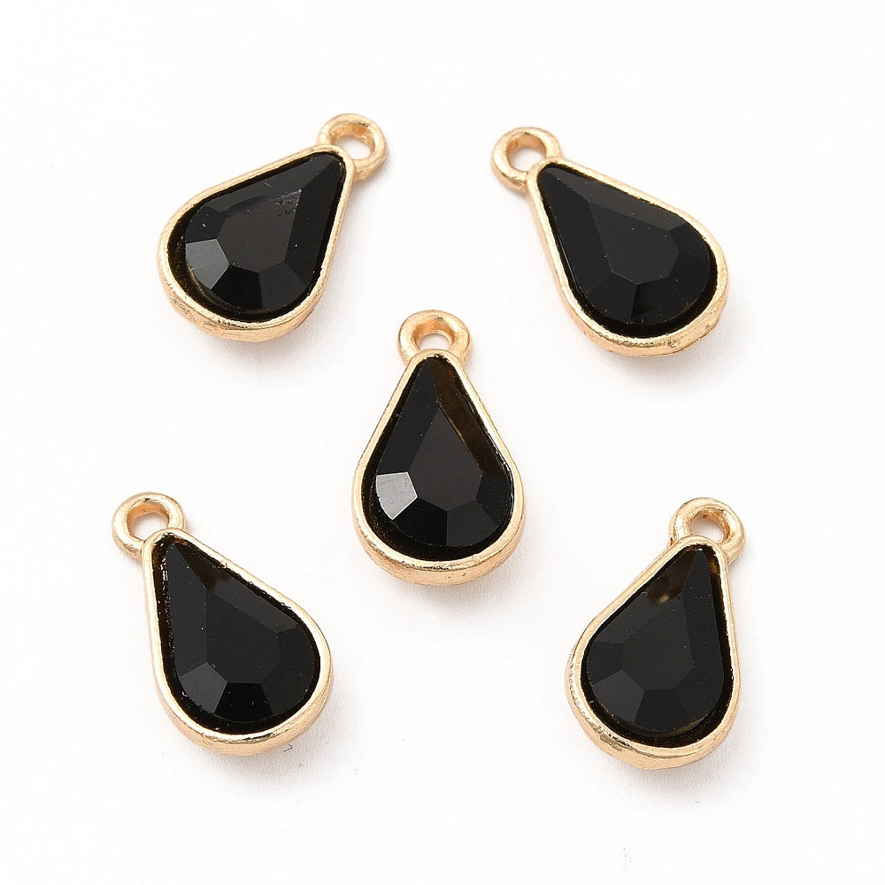Faceted Glass Rhinestone Pendants, with Golden Zinc Alloy Setting, Teardrop Charm, 1.8cm