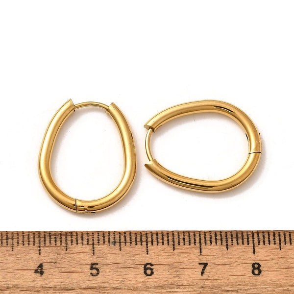 Oval gold plated stainless steel huggie hoops x 6
