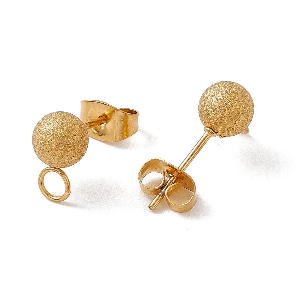304 Stainless Steel Stud Earring Findings, with Ear Nuts and Horizontal Loops, Textured, Round, Golden x 20 pieces. 10 sets