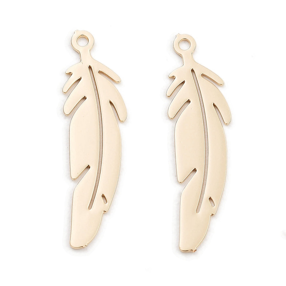 Long-Lasting Plated Brass Pendants, Feather, Light Gold