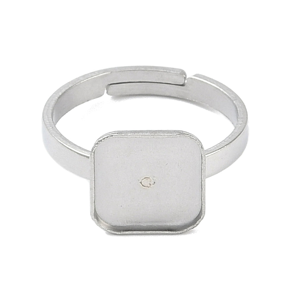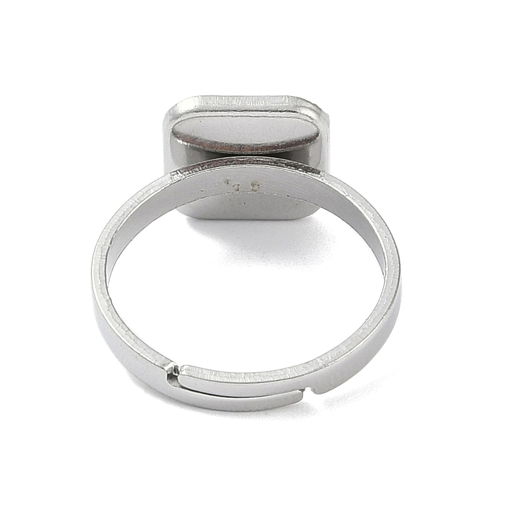 Non-Tarnish 304 Stainless Steel Adjustable Ring Components, Bezel Cup Ring Settings, Square, Stainless Steel Color