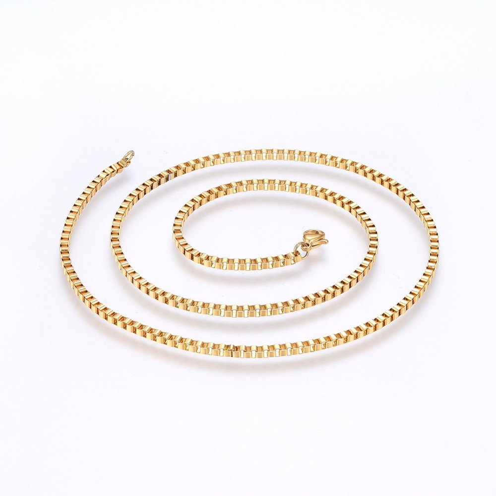 304 Stainless Steel Box Chain Necklaces, with Lobster Claw Clasps, Gol