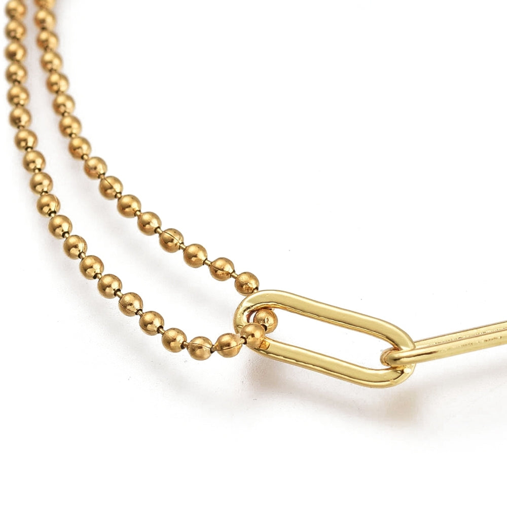 Chain Bracelets, Paperclip Chains, 304 Stainless Steel Ball Chains & Toggle Clasps, Golden