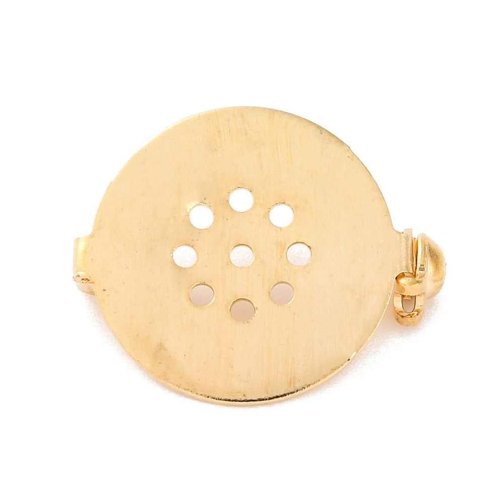 Flat gold plated round brooch settings x 10