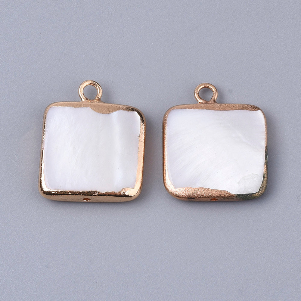 Square gold border shell charms x 4 pieces