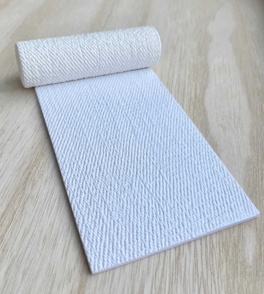 PLA biodegradable sandpaper texture roller. For best results roll in different directions until you get the look you want.
