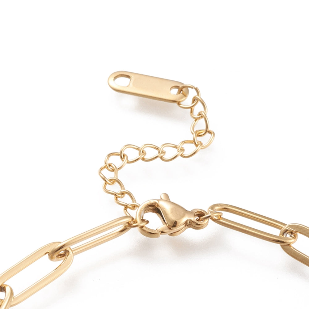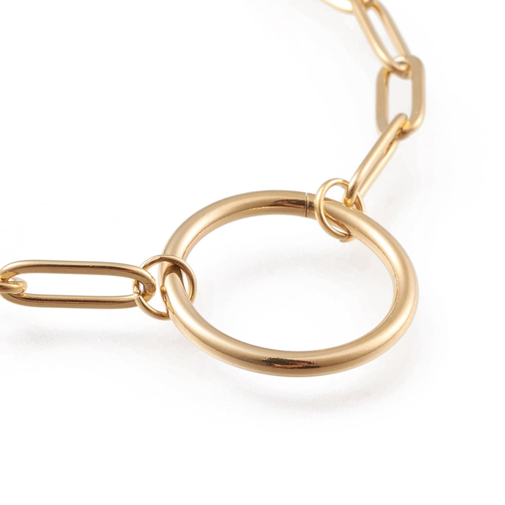 304 Stainless Steel Link Bracelets, with Paperclip Chains, Ring, Golden