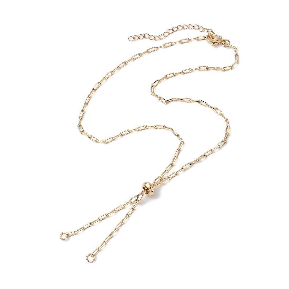 Slider Necklace Makings, with Paperclip Chains and Slider Beads, genuine 18K Gold Plated