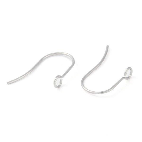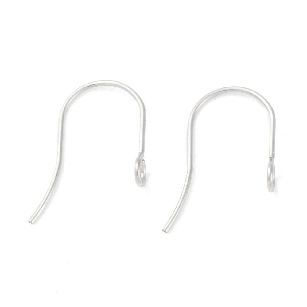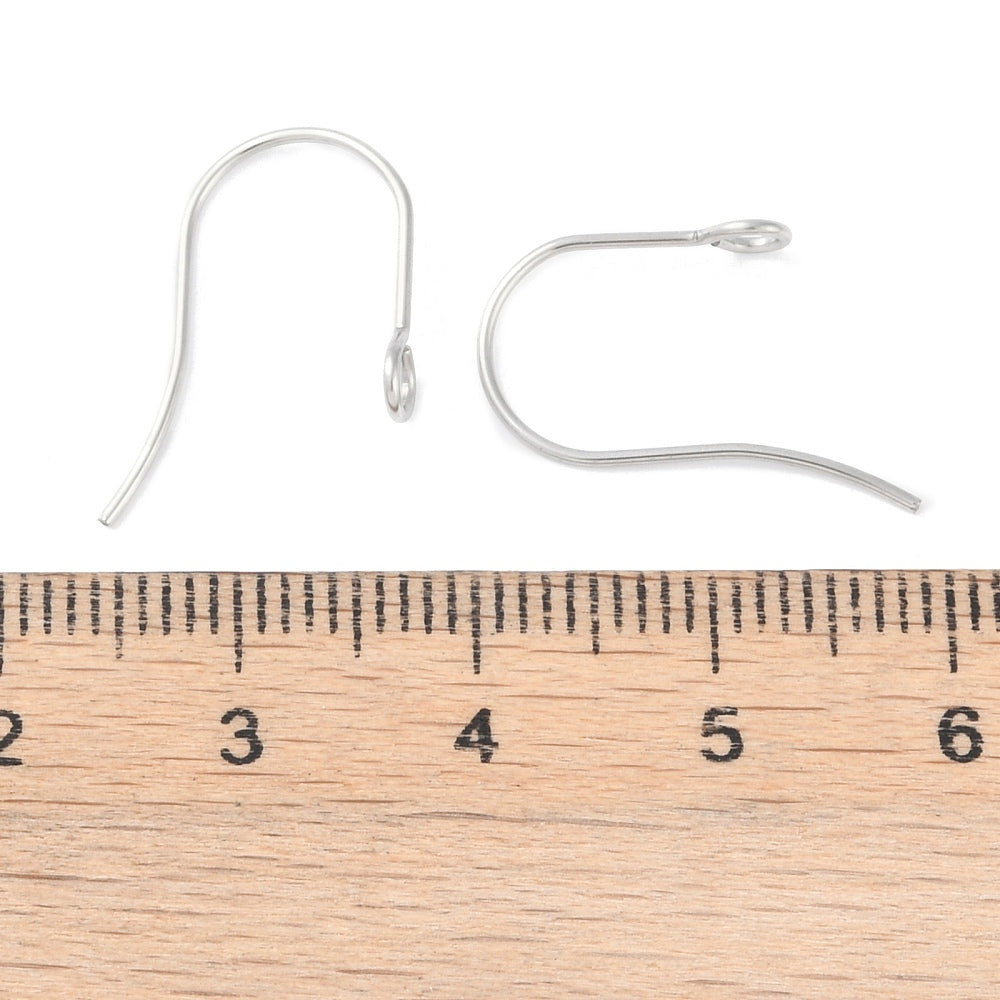 Tarnish resistant 316 Surgical Stainless Steel Earring Hooks, Ear Wire, with Loops. 20 pieces (10 pairs). Stainless steel colour.